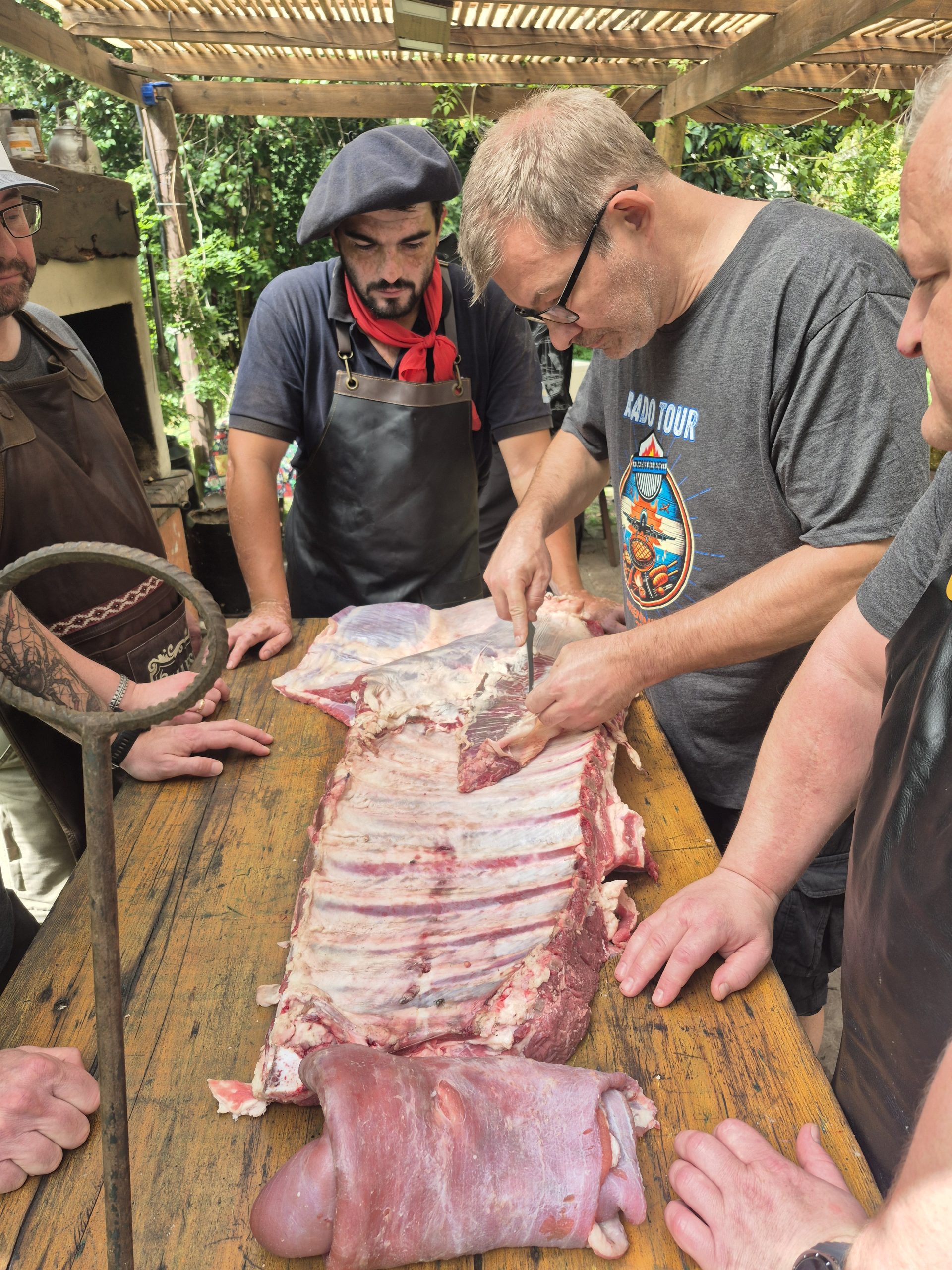 Serviert werden die Stücke in Tranchen direkt vom Brett, frisch aufgeschnitten und sofort genossen – so, wie es beim echten Asado üblich ist.